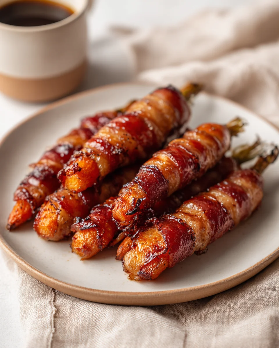 Brown Sugar Beef Bacon Wrapped Roasted Carrots