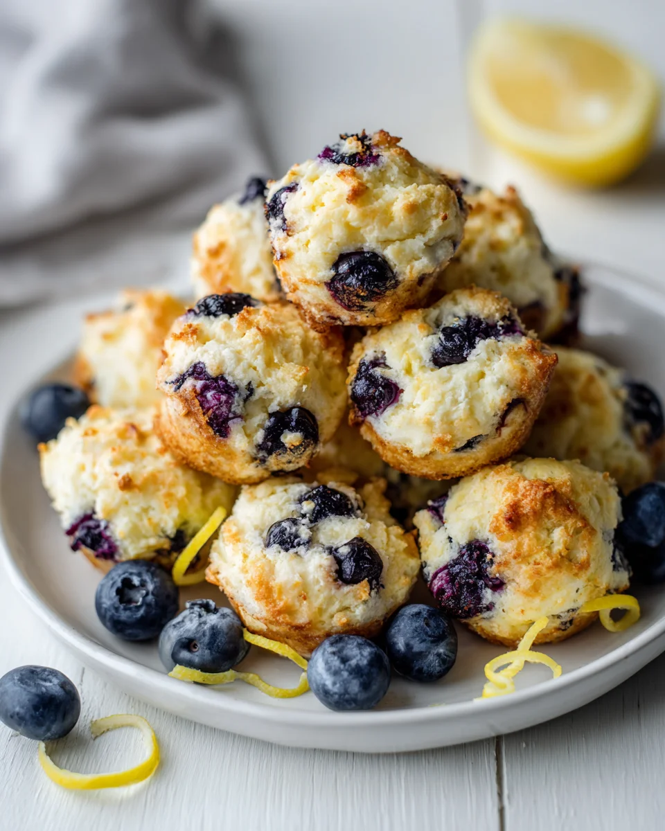 Serve the bites warm, optionally dusted with powdered sugar, drizzled with maple syrup or honey, or accompanied by a dollop of Greek yogurt or sour cream. Garnish with extra fresh lemon zest or a few fresh blueberries for flair.