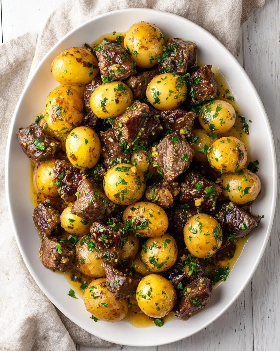 Crockpot Garlic Butter Beef Bites with Potatoes