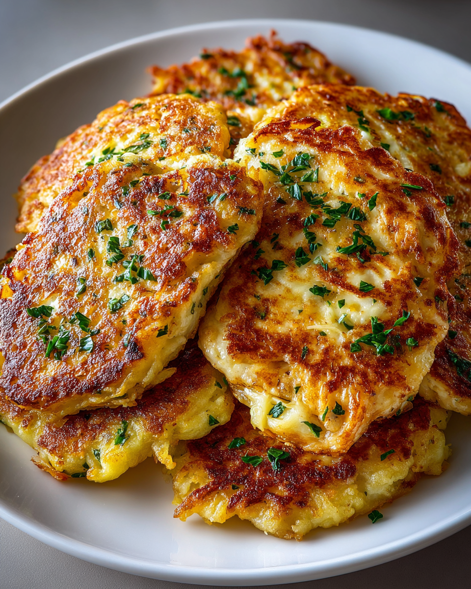 Cheesy Potato Pancakes with Chicken & Mozzarella: Crispy on the Outside, Melty on the Inside, and Impossible to Resist