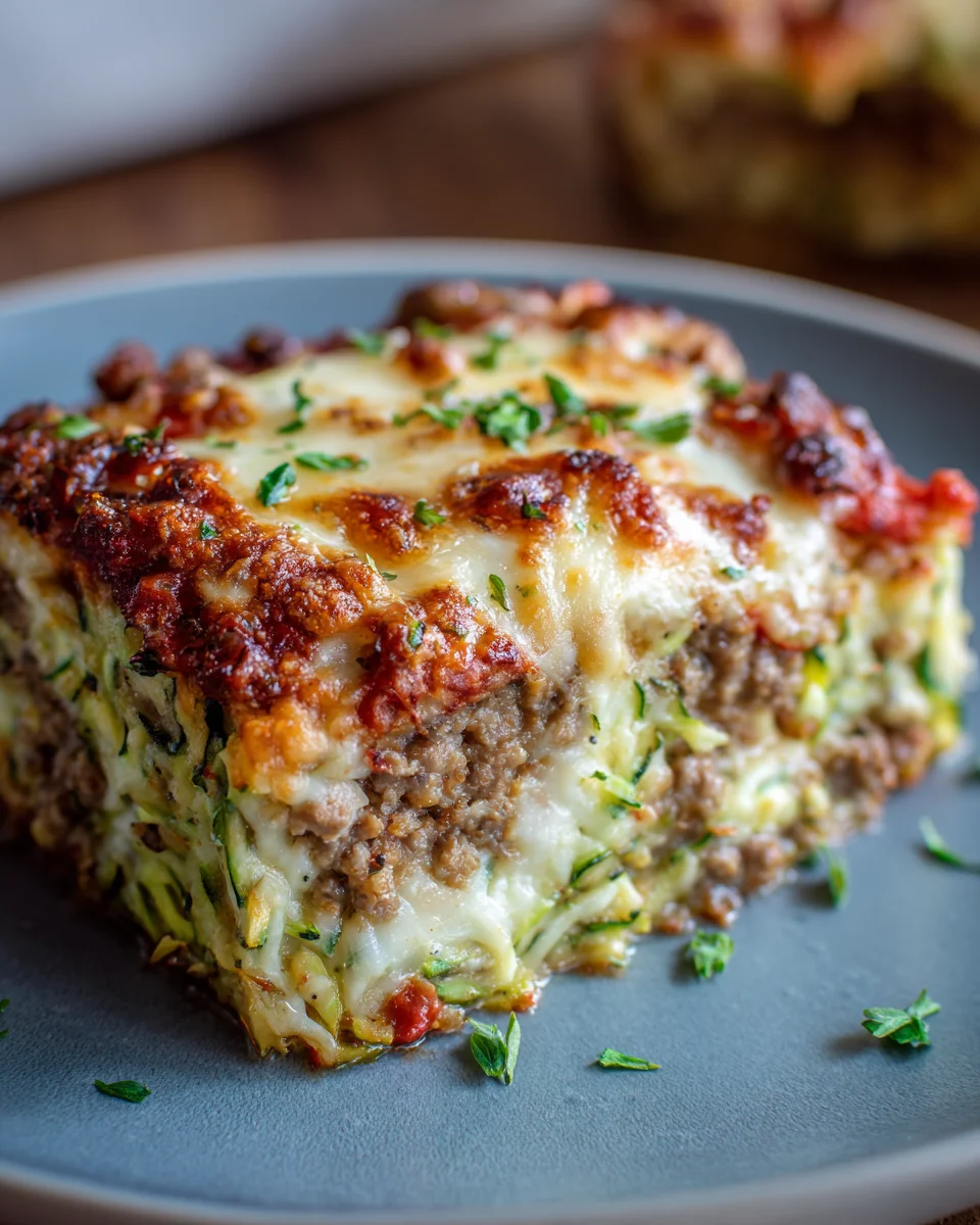 - Serve and Savor Your Homemade Zucchini Pizza Casserole: After the well-deserved rest, your magnificent “Zucchini Pizza Casserole” is ready to be enjoyed! Slice it into individual portions. For an extra touch of freshness and a vibrant pop of color, you can garnish each serving with a sprinkle of freshly chopped basil or parsley. This hearty and satisfying dish is substantial enough to be a complete meal on its own, especially if you’re mindful of your carbohydrate intake. However, it also pairs wonderfully with a simple, crisp green salad dressed with a light vinaigrette, or, for those who don’t mind a little extra indulgence, a side of warm garlic bread or crusty Italian bread to soak up any extra sauce. Prepare yourself for rave reviews; this “Zucchini Pizza Casserole” is a fantastic, flavorful, and healthier way to enjoy all the beloved tastes of pizza!