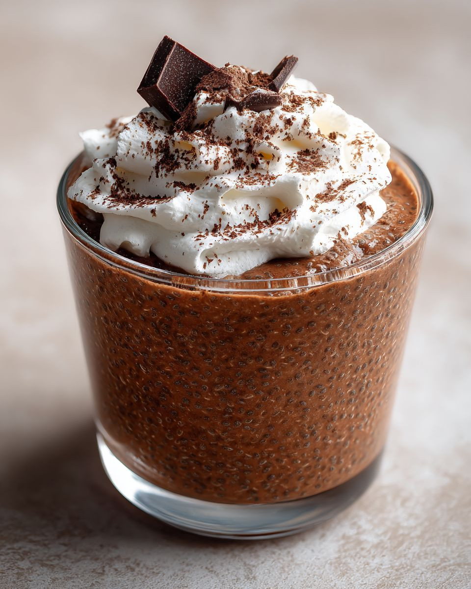 Rich and decadent chocolate chia seed pudding, perfect for a healthy dessert or breakfast. Easy to make and customizable with various toppings.