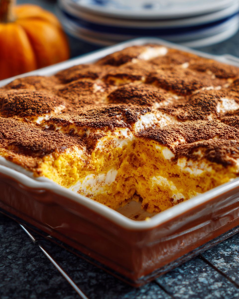 Moist and comforting pumpkin spice bake with a creamy cottage cheese base, perfect for fall.