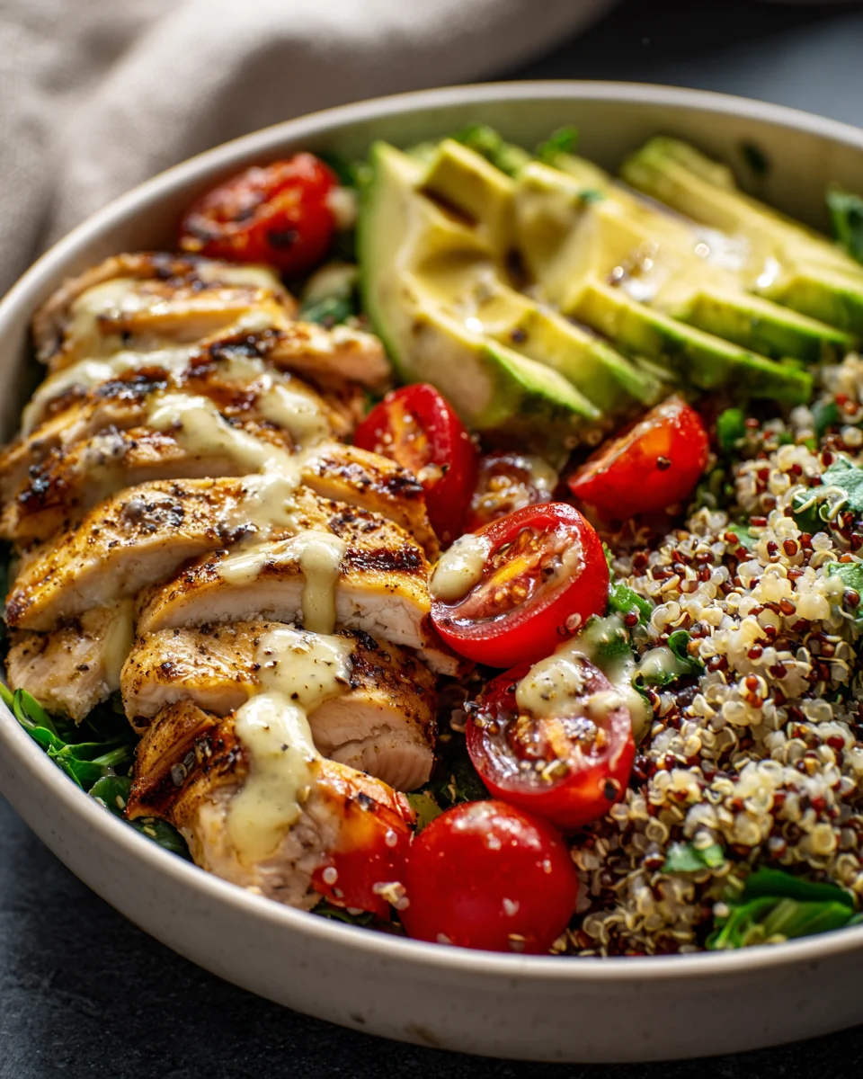 - Serve Immediately: Serve your Avocado Chicken Quinoa Bowl fresh! Encourage everyone to mix their ingredients together before eating to get a perfect bite with every forkful. This bowl is fantastic as a light lunch or a satisfying dinner. It’s also incredibly meal-prep friendly; just store the dressing separately and add the avocado just before serving for the best quality. Enjoy the vibrant flavors and textures in every single mouthful!