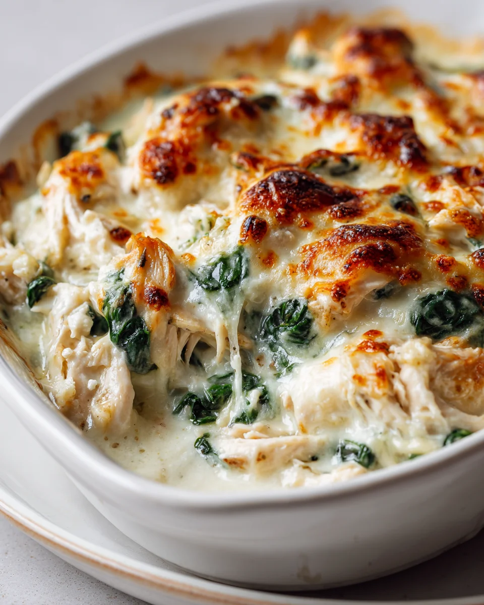 - Accompaniments: While this casserole is wonderfully satisfying and complete on its own, it also pairs beautifully with a variety of complementary side dishes. Consider serving it alongside a crisp green salad with a light vinaigrette; the acidity will cut through the richness of the casserole beautifully. Steamed white rice or fluffy quinoa would be excellent for soaking up all that delicious creamy sauce, ensuring not a drop of flavor is missed. Roasted asparagus, tender green beans, or even a medley of roasted root vegetables would also make excellent companions, adding a touch of freshness, vibrant color, and additional nutrients to your plate. Finally, a crusty loaf of artisanal bread is also fantastic for scooping up every last bit of that amazing, cheesy sauce. Enjoy your homemade comfort food creation – a truly exquisite Chicken And Spinach Casserole With Cream Cheese!