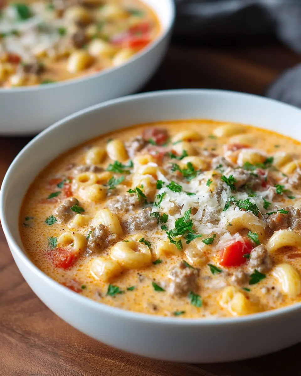 This soup combines the bold flavors of Italian sausage, the heartiness of pasta, and the richness of parmesan cheese into one pot. It’s a hybrid between a classic Italian pasta dish and a cozy soup, making it perfect for family dinners, meal prep, or even serving guests. The base is a tomato-infused broth, elevated with cream and parmesan, giving it a velvety, luscious texture.