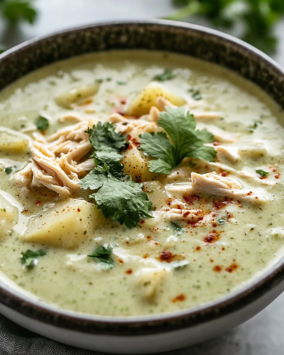 Return the blended soup to low heat. Stir in the heavy cream (or your lighter dairy alternative), warming gently but avoiding a rolling boil. Stir in the fresh lime juice and the majority of the minced fresh cilantro. Return the shredded or diced cooked chicken to the soup. Season generously with kosher salt and freshly ground black pepper to taste. Adjust seasonings until perfectly balanced. -