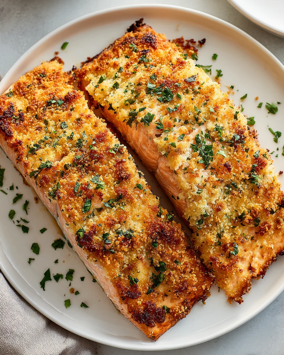 A gourmet salmon dish with a crunchy Parmesan crust, perfect for any occasion.