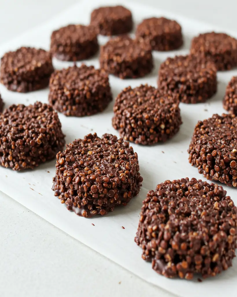 Keywords: dark chocolate quinoa crisps, quinoa chocolate bites, healthy chocolate snack, gluten-free dessert, no-bake chocolate recipe