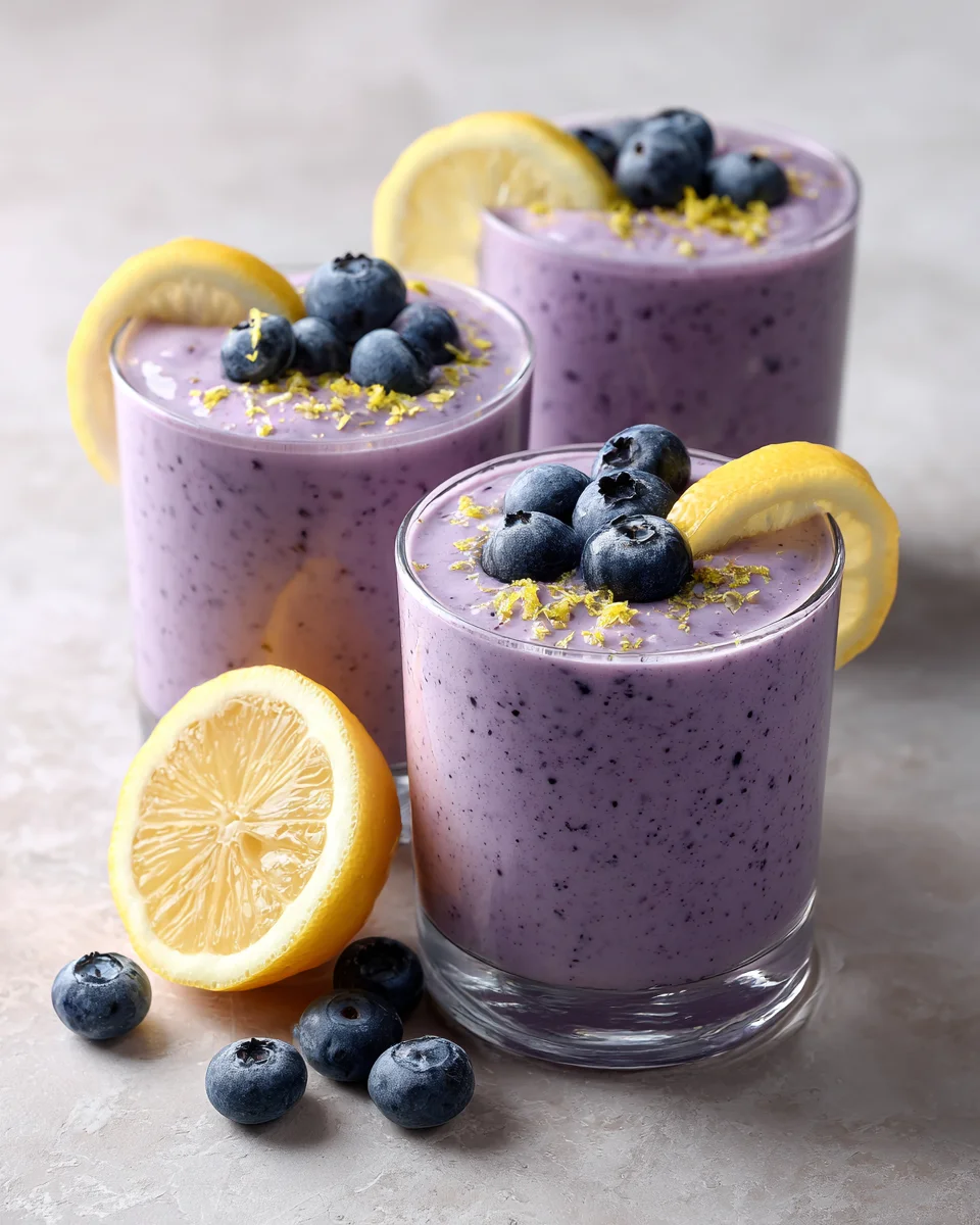 This blueberry lemon shake contains approximately 250 calories per serving, with about 7g of protein, 40g of carbohydrates, and 5g of fat. It’s a nutritious option, rich in antioxidants from the blueberries and vital nutrients from the lemon and yogurt, making it a great choice for a healthy snack or breakfast on the go!