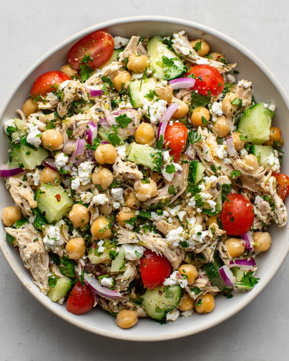 Chicken And Chickpea Salad is a vibrant and filling dish that features succulent pieces of grilled or roasted chicken tossed with hearty chickpeas, fresh vegetables, and a zesty dressing. The texture is a delightful mix of crunchy vegetables and creamy chickpeas, creating a satisfying bite every time. Unlike other salads that may feel light or insubstantial, this salad stands out with its robust components, making it a complete meal in itself. It’s often compared to traditional chicken salads, but the addition of chickpeas elevates it, providing extra protein and fiber that keeps you feeling full longer.