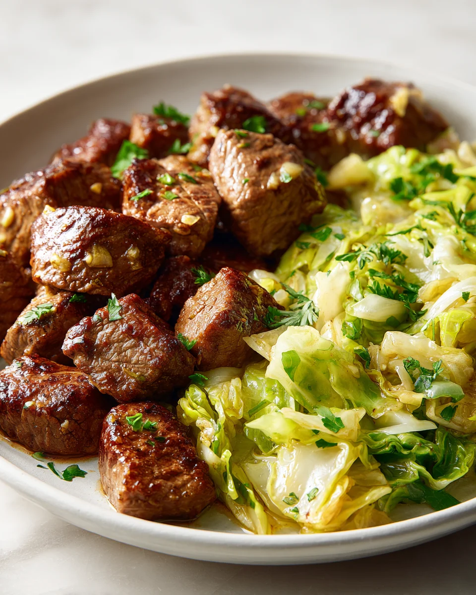 Delicious Garlic Butter Steak Bites with Sauteed Cabbage