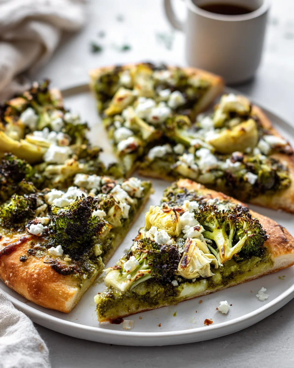 This Green Pizza with Pesto, Feta, Artichokes, and Broccoli is a vibrant celebration of fresh flavors and stunning visual appeal. Each slice is a burst of freshness, color, and wholesome goodness that feels indulgent without being heavy.