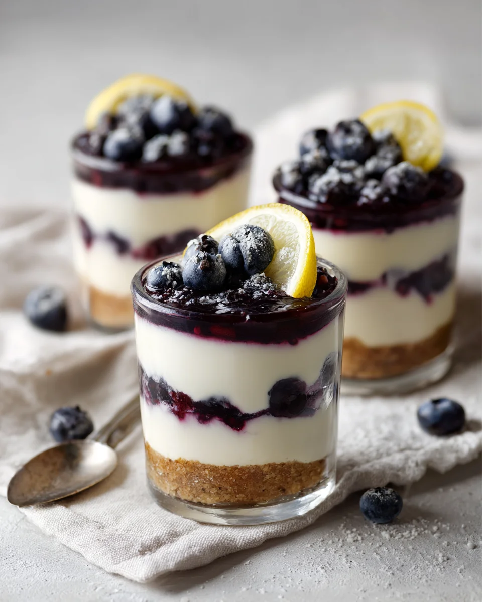 - Garnish: Before serving, top each cheesecake cup with a few additional blueberries and a sprinkle of lemon zest for a beautiful presentation.