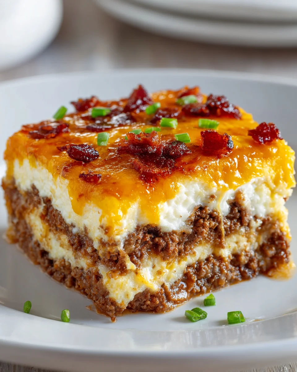 A delicious low-carb casserole combining the flavors of cheeseburgers with a healthy twist.
