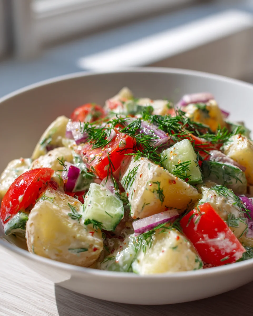 Mediterranean Arugula Potato Salad is a refreshing twist on the classic potato salad, featuring tender, boiled potatoes tossed with fresh arugula, tangy feta cheese, and a zesty vinaigrette. What sets this salad apart is the vibrant peppery flavor of arugula, which adds a refreshing contrast to the creamy potatoes. Unlike traditional potato salads that may be heavy with mayonnaise, this Mediterranean version is light yet satisfying, making it a perfect accompaniment to grilled meats or a standalone dish for lunch. The textural interplay of soft potatoes and crunchy arugula makes every bite a delightful experience.