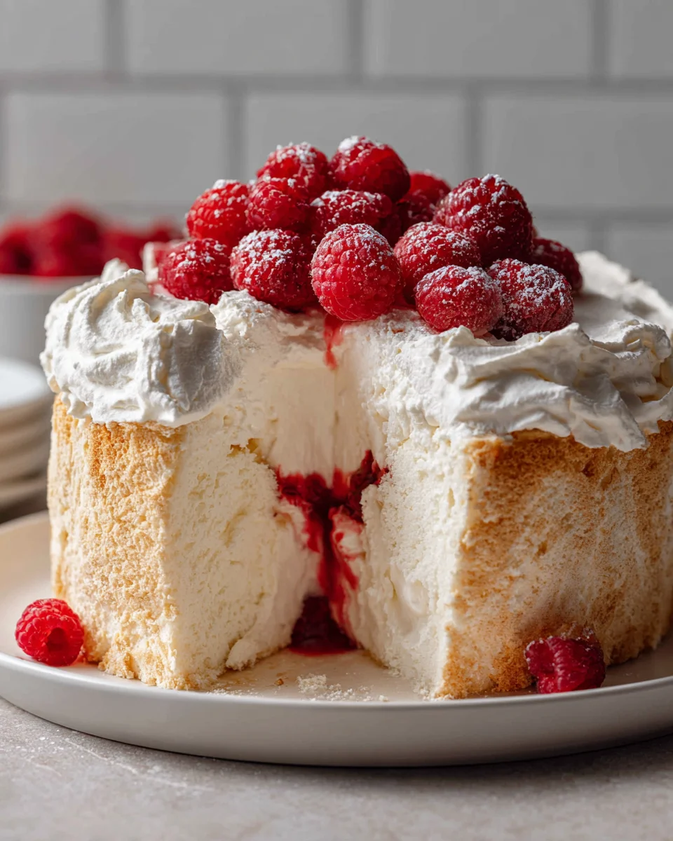 Raspberry Angel Food Cake is a delightful dessert that perfectly embodies the essence of spring and summer gatherings. With its light, airy texture and vibrant raspberry flavor, this cake has won the hearts of dessert lovers for generations. The origin of angel food cake dates back to the 19th century, and it has evolved into a cherished classic, especially when paired with the tart sweetness of fresh raspberries. People adore Raspberry Angel Food Cake not just for its taste, but also for its visually stunning presentation—a beautiful, fluffy cloud of cake adorned with the jewel-like berries that make it an irresistible centerpiece at any occasion. Whether you’re celebrating a birthday, hosting a summer picnic, or simply treating yourself after a long week, Raspberry Angel Food Cake is a sweet reminder of life’s simple pleasures.