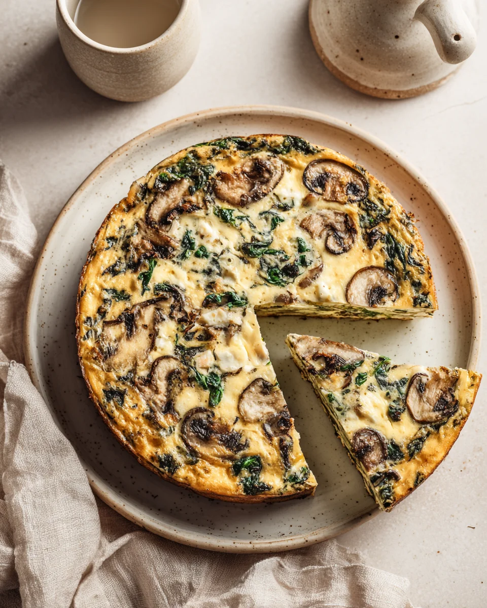 Delicious Spinach and Mushroom Cottage Cheese Crustless Quiche