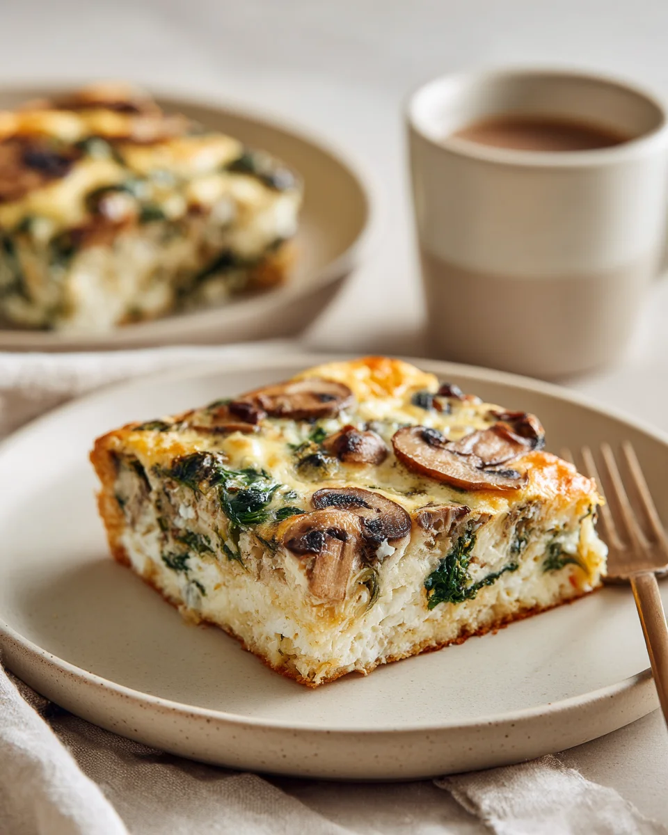 Spinach Mushroom Cottage Cheese Breakfast Casserole