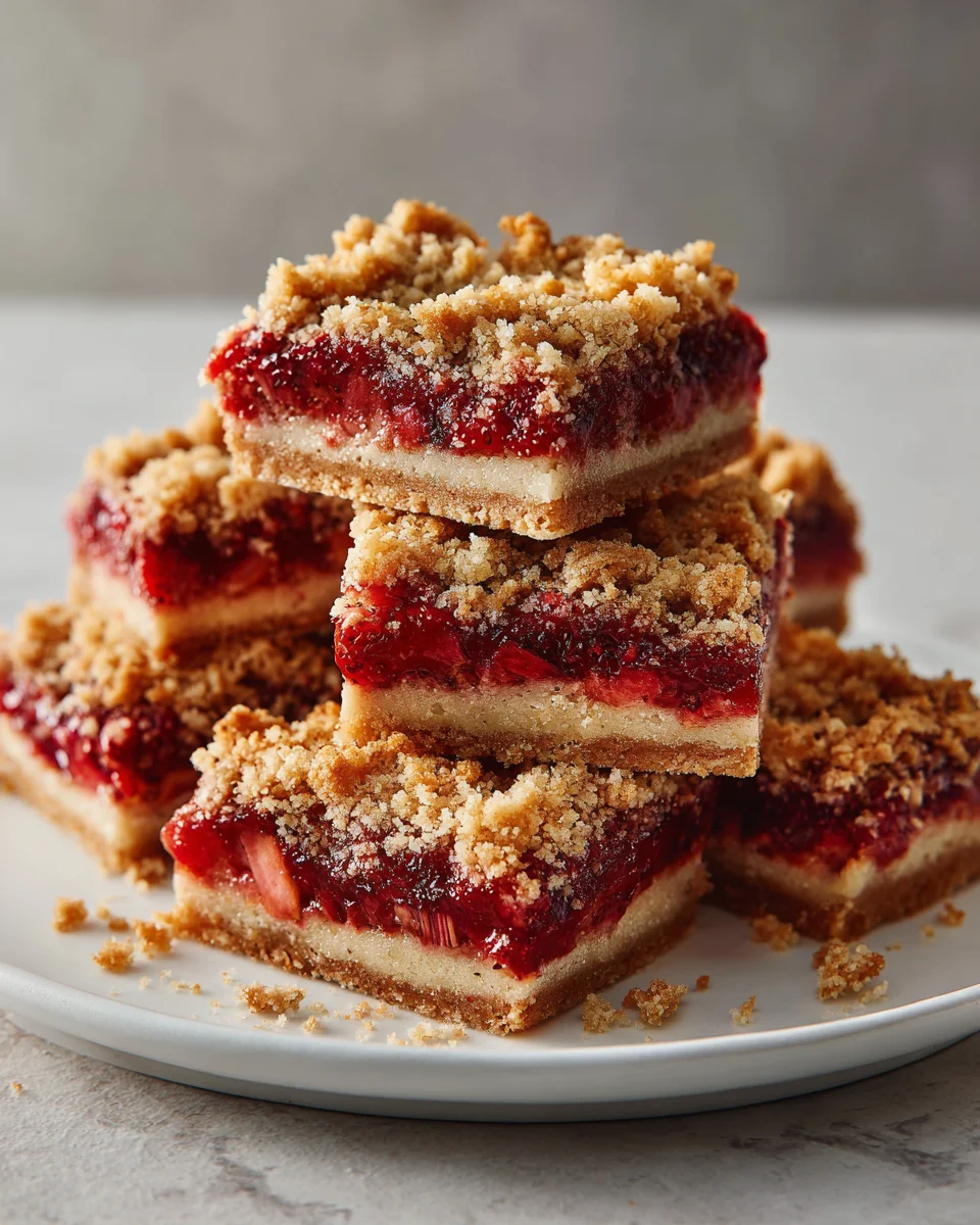 - Can I use frozen strawberries and rhubarb? Yes, but thaw and drain excess moisture to avoid soggy bars.