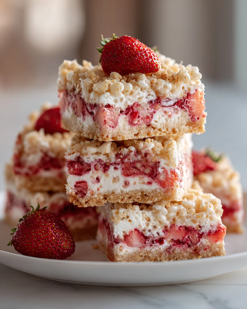 A delightful twist on classic Rice Krispies treats, combining the flavors of strawberry shortcake for a fun and easy dessert.