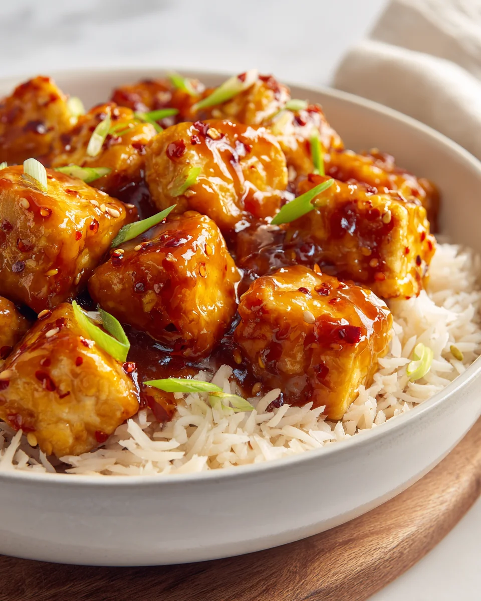 Imagine a burst of citrus as the sweet orange sauce envelops each crispy piece of tofu, creating a symphony of flavors. The first bite reveals a delightful crunch, followed by the perfect balance of sweetness and a hint of savory richness. The sauce has a slight tang from the fresh orange juice, complemented by a whisper of garlic and ginger, providing depth to every mouthful. It’s a dish that feels indulgent yet light, making it a sensational experience for your taste buds!