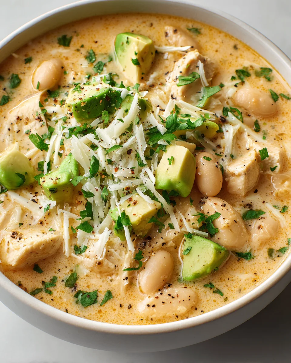 A deliciously creamy and comforting chili made with tender chicken, white beans, and a blend of spices, perfect for any gathering.