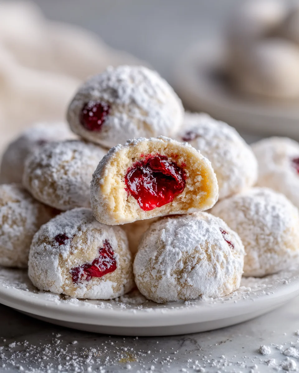 Oh my goodness, if you’ve followed along with this recipe, you already know the magic that awaits you. But let me truly underscore why this particular treat, these delightful little morsels, are an absolute must-bake. We’re not just talking about any cookie here; we’re talking about a timeless classic elevated to new heights. The buttery, melt-in-your-mouth texture of the cookie itself is pure comfort, a tender crumb that dissolves beautifully on the tongue. Then comes that incredible burst of sweet, tangy cherry from the hidden preserve, a surprise that makes every bite an adventure. It’s a harmonious symphony of flavors and textures – the slight crispness of the powdered sugar exterior, the yielding nut-infused dough, and the vibrant fruit filling. These aren’t just cookies; they’re tiny, edible gifts, perfect for brightening any day, adding a touch of elegance to a holiday platter, or simply enjoying with a quiet cup of tea. They possess an undeniable charm, evoking feelings of nostalgia and homemade goodness, yet they feel incredibly special and gourmet. The simplicity of their preparation belies the sophisticated taste they deliver, making them an accessible baking project for anyone, regardless of their experience level. Trust me, once you experience the joy of biting into one, you’ll understand why these cookies quickly become a cherished favorite, not just for you, but for everyone lucky enough to try them. The visual appeal alone, with their delicate “snowy” coating, makes them utterly irresistible and a beautiful centerpiece for any gathering. They are truly a testament to how simple ingredients can create something extraordinary.