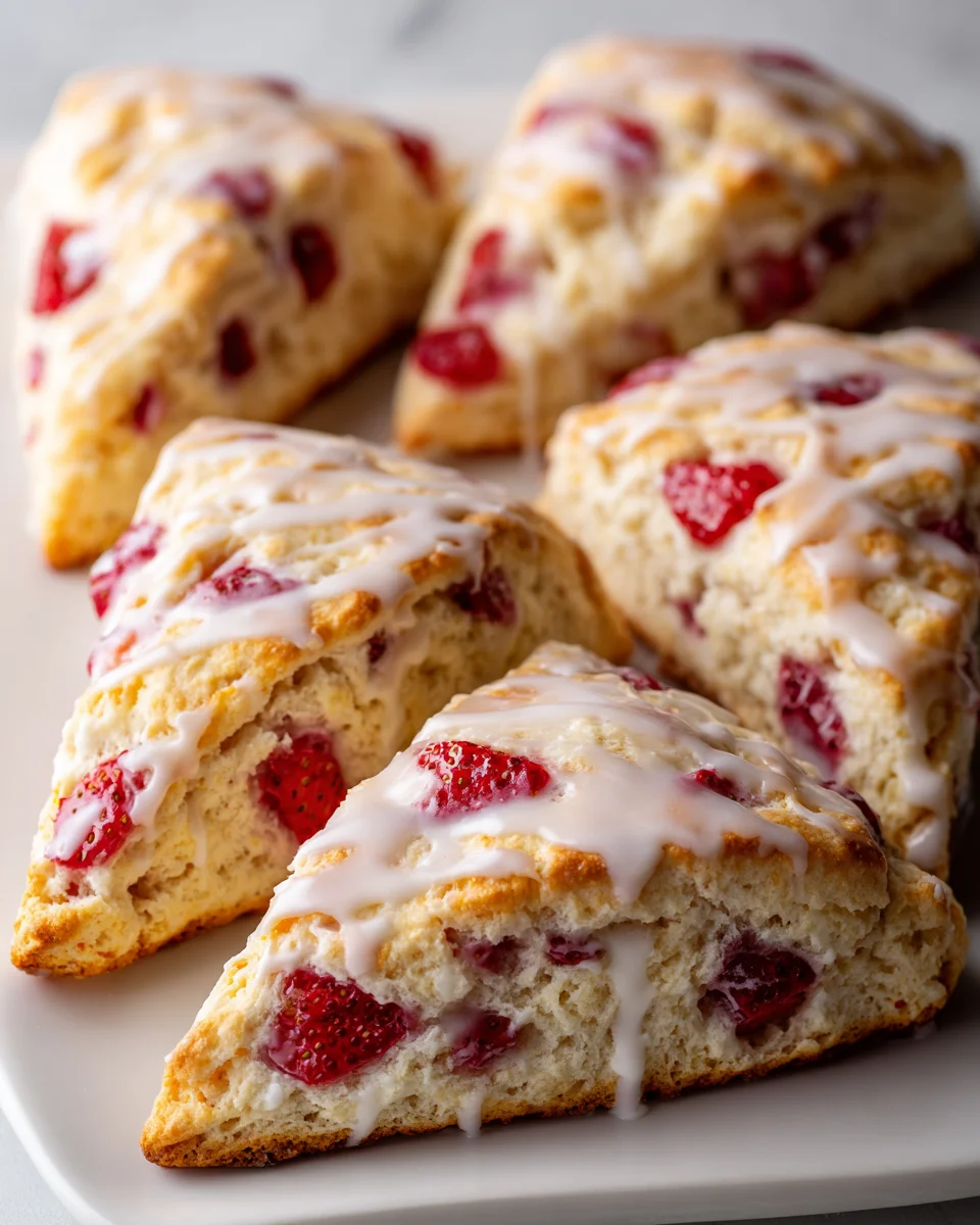 - For an extra touch of freshness and visual appeal, garnish with additional fresh strawberry slices or halves. The vibrant red of the strawberries against the white cream and golden scone is simply irresistible.