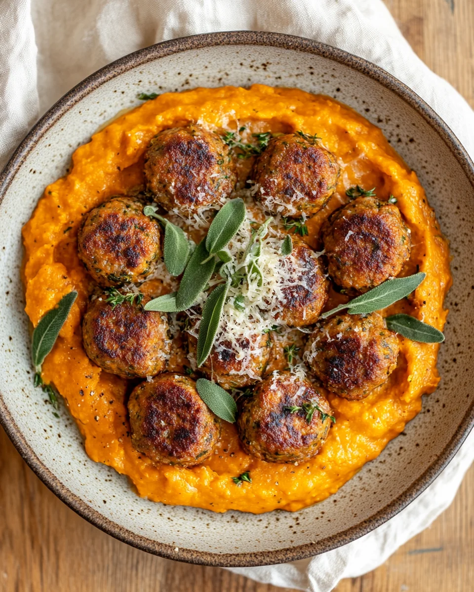 Now, let’s talk about bringing this masterpiece to your table. While utterly delicious on its own, these meatballs and their glorious sauce are incredibly versatile, offering a multitude of serving possibilities. My absolute favorite way to enjoy them is over a generous bed of freshly cooked pasta – think tagliatelle, pappardelle, or even a simple spaghetti or penne – allowing the rich, creamy sauce to cling beautifully to every strand. But please, don’t stop there! Imagine them spooned generously over creamy, dreamy polenta, absorbing all that robust flavor, or nestled alongside a fluffy mound of garlic mashed potatoes for the ultimate comfort food pairing, especially as the temperatures drop. If you’re looking for something lighter, wild rice or quinoa makes a fantastic, healthy base, offering a lovely nutty counterpoint to the sweet pumpkin and savory turkey. And for those crisp autumn evenings, a side of roasted Brussels sprouts or asparagus would complement the dish perfectly, adding a touch of vibrant green and a welcome textural contrast. And of course, don’t forget the crusty bread! A warm, crusty baguette or sourdough loaf is absolutely essential for soaking up every last drop of that incredible, golden sauce. For a final flourish, a sprinkle of freshly grated Parmesan cheese and a few extra fresh sage leaves for garnish will elevate the presentation and add an extra layer of savory depth.