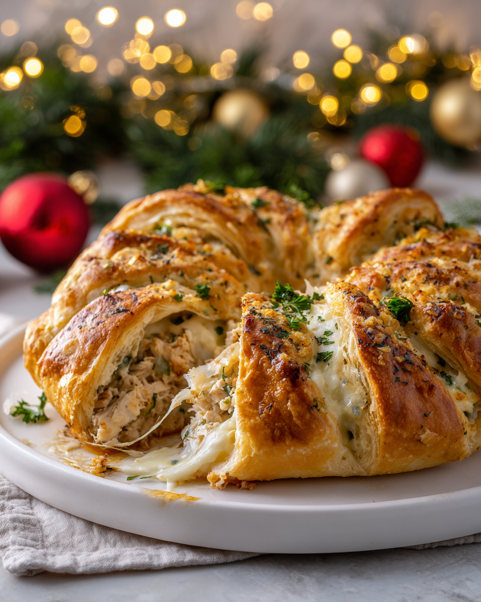 The first time I made this, it was the weekend after Thanksgiving. I was staring at a fridge full of extra turkey and not enough motivation for complicated cooking. Crescent rolls, garlic herb seasoning, and a leftover jar of Alfredo sauce were calling my name. A little shredding, mixing, and folding later, this golden, flaky ring came out of the oven steaming, savory, and absolutely irresistible. My family devoured it in one sitting.