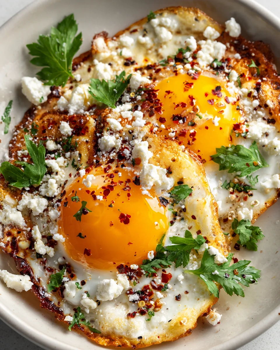- Explosion of Flavor: The salty, briny feta, the rich olive oil, the warmth of the red pepper flakes, and the fresh burst of herbs all come together in a harmonious blend. Each bite is packed with savory goodness, making these “Crispy Feta Fried Eggs” incredibly satisfying.