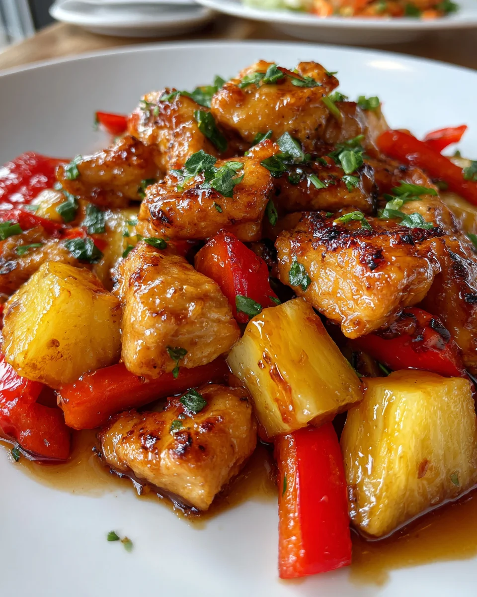 A vibrant one-pan meal combining tender chicken, juicy pineapple, and colorful bell peppers, perfect for busy weeknights.
