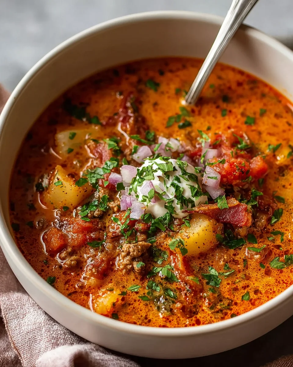 When you take your first spoonful of Hearty Keto Soup Comfort Food Without Carbs, you’re greeted with a warm, savory explosion of flavor. The broth is rich and creamy, enveloping tender chunks of beef that melt in your mouth. The subtle spices add a depth that keeps each bite interesting, while the vegetables provide a delightful crunch that contrasts beautifully with the smoothness of the soup. Imagine the warming notes of garlic and herbs mingling with the satisfying umami of beef – it’s a flavor journey that feels both familiar and new, perfect for any comfort food lover.