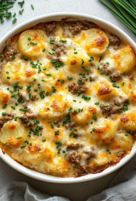But the fun doesn’t stop there! This recipe is incredibly adaptable, inviting you to put your own spin on it. If you’re a cheese lover, consider experimenting with different varieties. While I often use a sharp cheddar for its robust flavor, a Gruyere would lend a nutty sophistication, or even a smoked provolone for an added layer of smoky depth. For those who like a bit of heat, a pinch of red pepper flakes or a finely diced jalapeño (seeds removed for less intensity) could be added to the sauce during simmering. Feeling adventurous? You could incorporate other vegetables directly into the casserole layers. Sautéed mushrooms, caramelized onions (in addition to the ones already in the recipe), or even thinly sliced bell peppers would meld wonderfully with the existing flavors, adding both texture and nutrition. If beef chops aren’t readily available, or if you prefer a different cut, boneless beef short ribs or even thick-cut pork chops could be used, though cooking times might need slight adjustment to ensure perfect tenderness. For a truly indulgent twist, a splash of red wine or a hint of smoked paprika in the gravy can deepen the flavor profile significantly. The possibilities are truly endless, limited only by your imagination and what you have on hand in your pantry.
