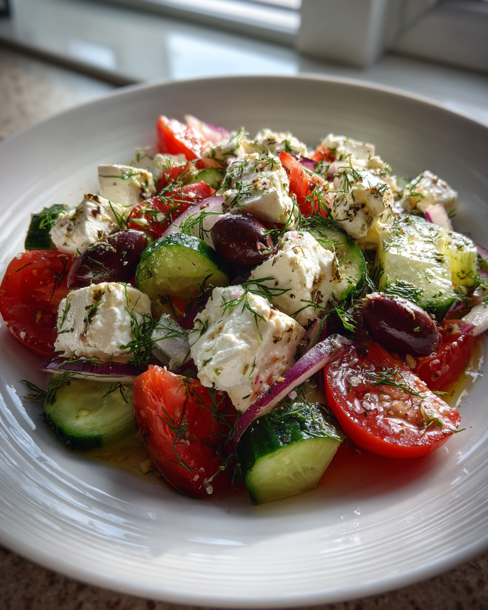 This salad is loaded with nutritional benefits. Cottage cheese is rich in high-quality protein, calcium, and B vitamins, making it excellent for muscle support and satiety. Cucumbers and tomatoes are hydrating and rich in antioxidants. Olives and olive oil provide heart-healthy fats. Fresh herbs add micronutrients and anti-inflammatory properties. Altogether, this dish supports balanced energy, fullness, and nourishment without feeling heavy or restrictive.