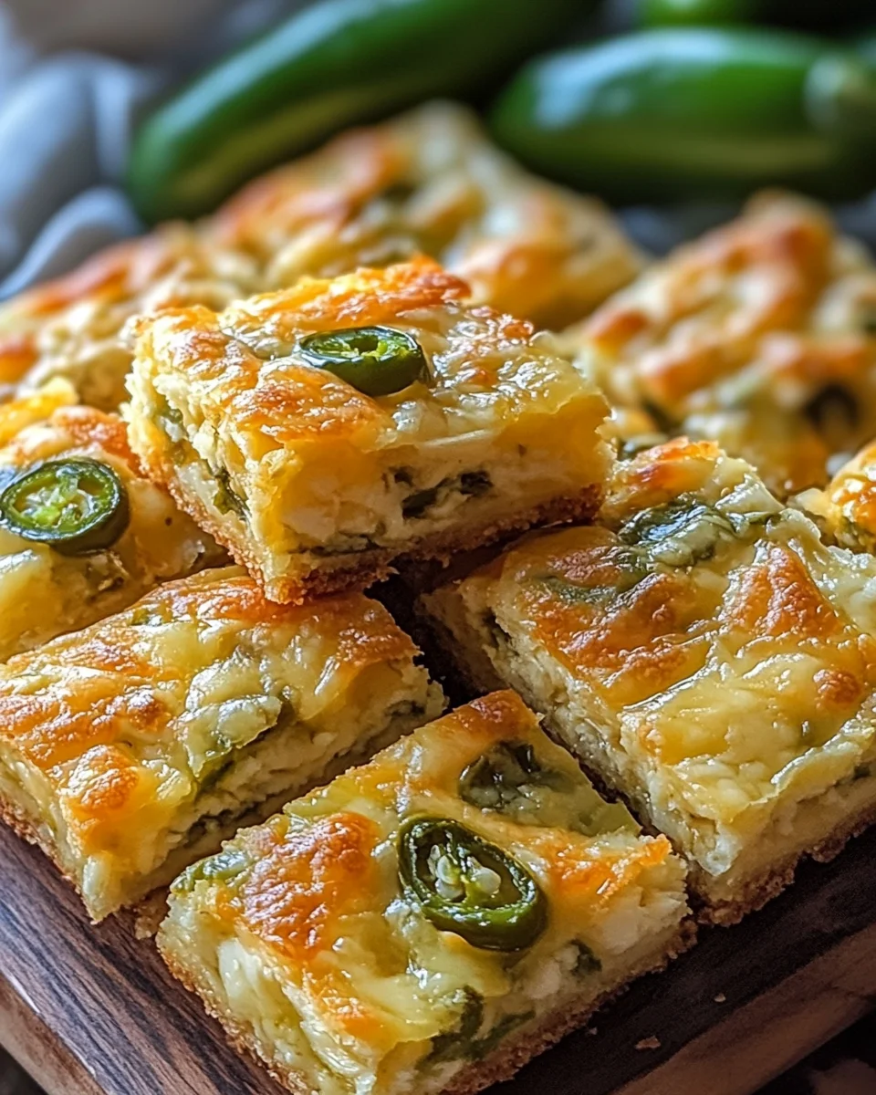 These irresistible Jalapeno Cheese Squares are the ultimate answer to cravings for something savory, spicy, and utterly satisfying. A perfect blend of creamy, melted cheese and vibrant jalapeño heat, they feature a crisp, golden exterior and a warm, gooey interior, ideal for appetizers, parties, or a delightful spicy treat.