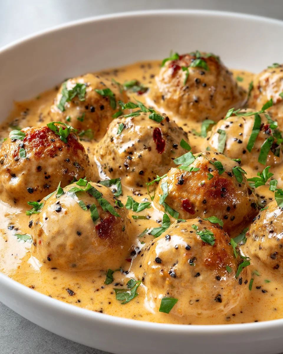 These meatballs pair beautifully with a variety of sides. Consider serving them over spaghetti or zoodles for a low-carb option. Garlic bread is a favorite choice for dipping into the creamy sauce. A crisp green salad with a light vinaigrette can add a refreshing contrast, while a glass of Chardonnay or sparkling water makes for a delightful drink pairing.