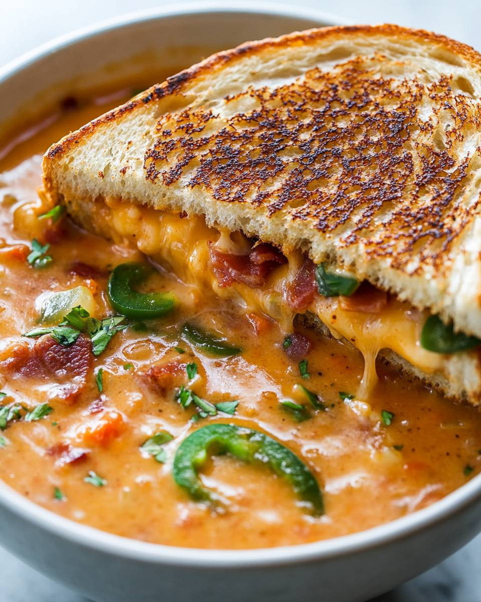 Creamy, cheesy jalapeño popper soup with a perfect blend of spicy and comforting flavors.