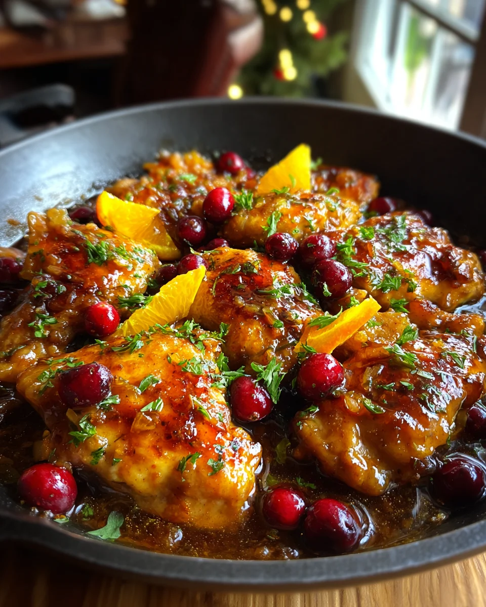 A culinary experience marrying vibrant tart cranberries with bright orange zest, coating succulent chicken in a glossy, irresistible glaze. This recipe transforms comforting North American festive flavors into an elegant yet approachable main course.