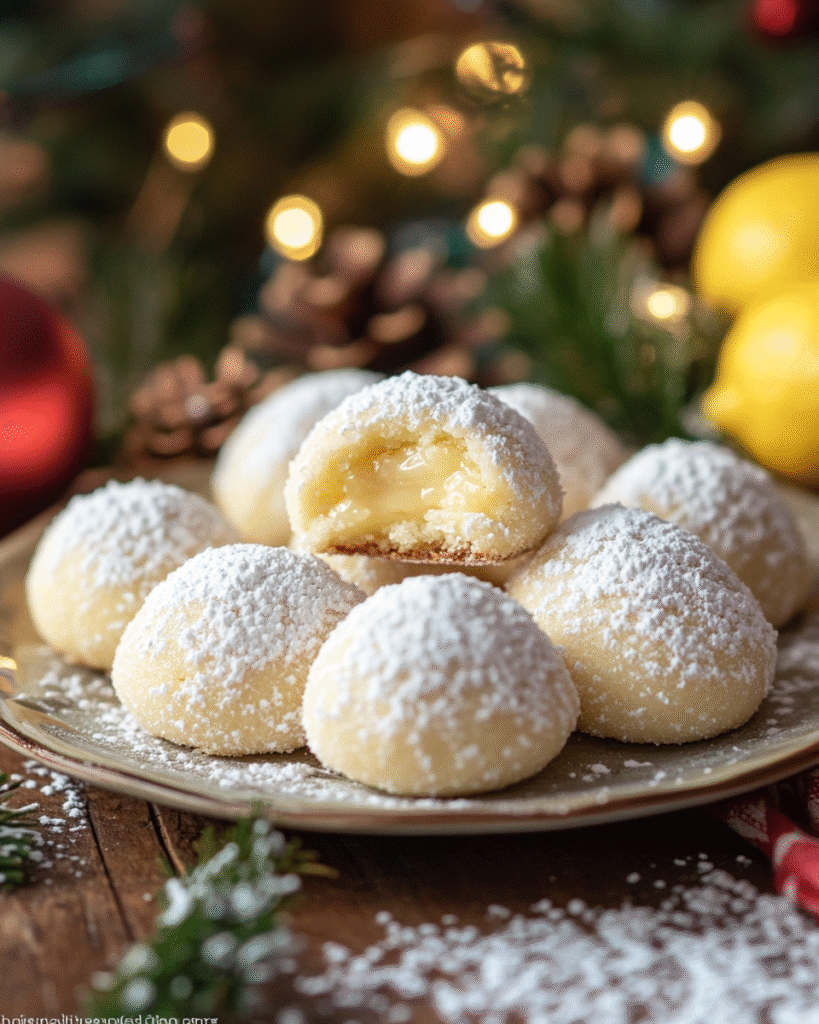 These cookies look like tiny snowballs, making them ideal for winter celebrations. Their bright lemon flavor adds a refreshing twist among richer holiday treats like fudge or gingerbread. They’re easy to make in large batches, travel well, and stay fresh for days. Plus, the creamy surprise inside gives them that “wow” factor at cookie exchanges and family gatherings.