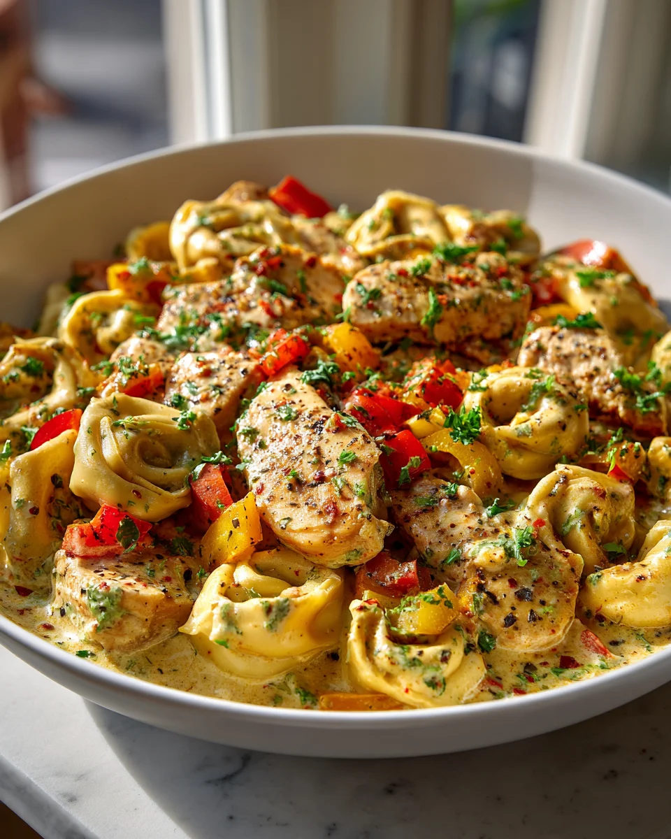 The flavor profile of The Best Loaded Cajun Alfredo Tortellini Skillet Recipe is a harmonious blend of creamy and spicy. The Alfredo sauce provides a rich and indulgent base, while the Cajun spices introduce a delightful heat that lingers just enough to make you crave another bite. The sweetness of bell peppers and the savory notes from the sautéed onions create a wonderful balance, ensuring that each spoonful is bursting with flavor. The tortellini, with its cheesy filling, complements the sauce perfectly, resulting in a dish that feels both comforting and exciting.
