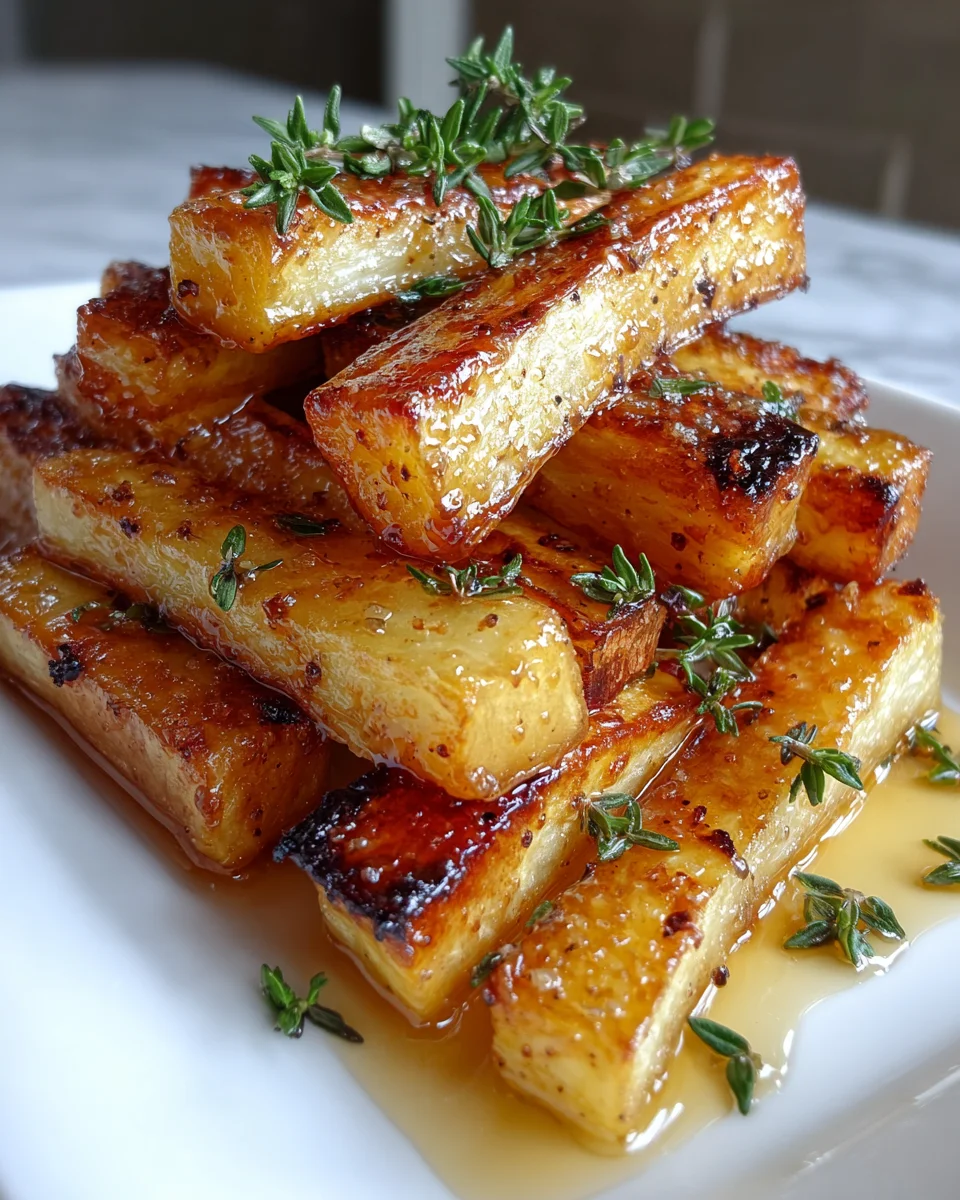 A cozy and comforting side dish featuring roasted parsnips glazed with maple syrup and fresh thyme, perfect for chilly evenings.