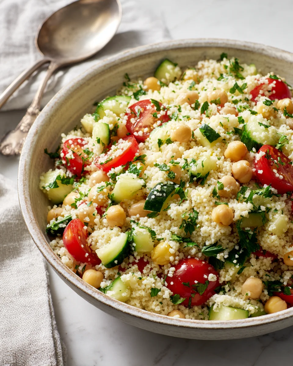 So, what exactly is this delightful dish? Picture fluffy, tender couscous serving as the perfect base, generously studded with a colorful mosaic of crisp cucumbers, ripe cherry tomatoes, vibrant bell peppers, and a generous scattering of fresh, aromatic herbs like parsley and mint. It’s all then beautifully coated in a simple yet incredibly flavorful lemon and extra virgin olive oil dressing, creating a truly irresistible and wholesome experience.