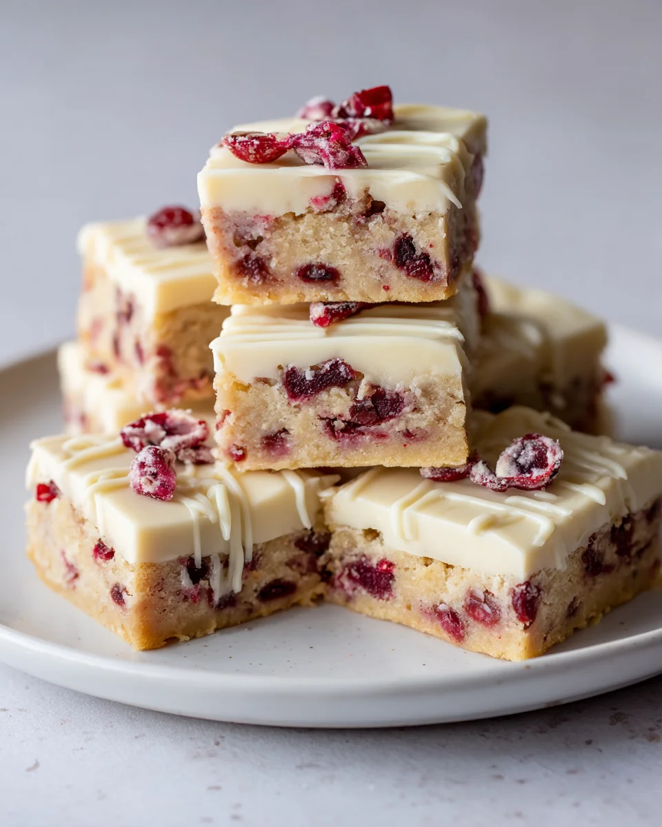 Recreate the magic of Starbucks’ iconic Cranberry Bliss Bars at home! These delightful treats feature a chewy blondie base studded with cranberries and white chocolate, topped with a tangy cream cheese frosting and a signature white chocolate drizzle. Perfect for the holiday season!