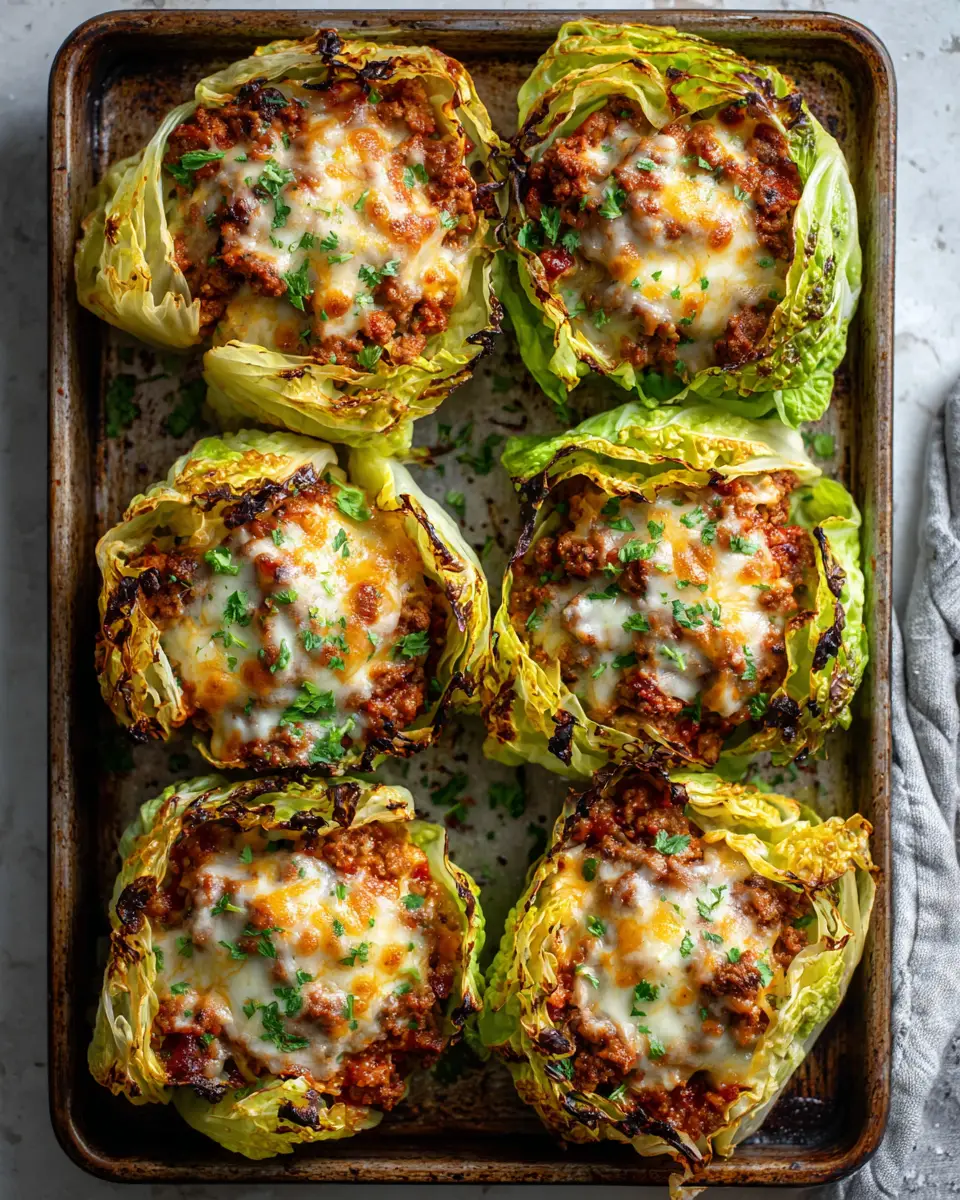 This dish brings together tender roasted cabbage “buns,” juicy seasoned ground beef, zesty marinara sauce, and melted cheese. It’s a meal that feels indulgent but is naturally low in carbs and packed with nutrition. Whether you’re following a keto lifestyle, trying to cut back on bread, or just want a new twist on burger night, this recipe is a winner.