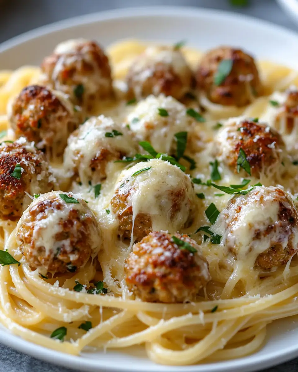 This dish pairs buttery garlic meatballs with a luscious Parmesan cream sauce tossed over linguine. The meatballs are seasoned, seared to perfection, and then coated in melted garlic butter. Combined with pasta and freshly grated Parmesan, the result is a decadent Italian-inspired dinner that’s hearty yet elegant.