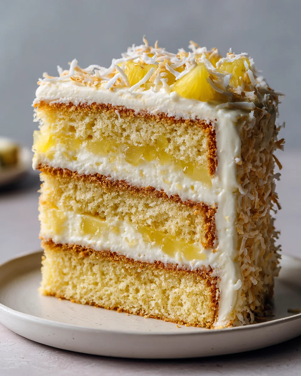 A delightful cake combining tropical flavors of pineapple and coconut, perfect for celebrations.