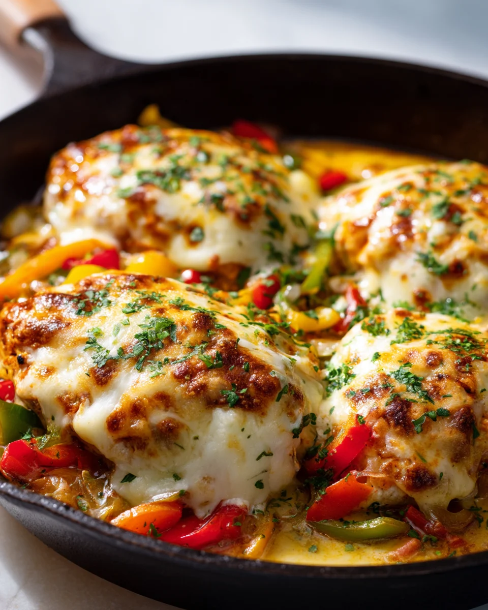 And there you have it, my friends – the irresistible journey to mastering what I genuinely believe will become a new favorite in your culinary repertoire: the magnificent Cheesy Baja Chicken Bell Pepper Skillet. I’ve poured my heart into sharing this recipe with you because it embodies everything I love about home cooking: it’s vibrant, incredibly flavorful, remarkably easy to prepare, and delivers a show-stopping dish with minimal fuss. This isn’t just another dinner; it’s a celebration of bold, zesty Baja-inspired flavors meeting the comforting warmth of melted cheese and tender chicken, all coming together in one convenient pan. It’s the kind of meal that makes weeknights feel like a special occasion and brings smiles to every face at the table. The harmonious blend of savory, perfectly seasoned chicken, the crisp-tender sweetness of the bell peppers, and the gooey, bubbling cheese creates a symphony of textures and tastes that is truly unforgettable. It’s a dish that manages to be both hearty and fresh, satisfying your cravings while still feeling incredibly wholesome.