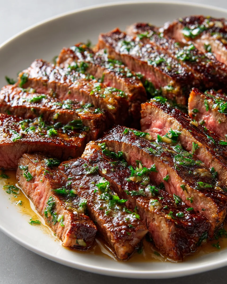 Drizzle any remaining garlic butter over the sliced steak and garnish with extra parsley if desired. Serve immediately for the best flavor.
